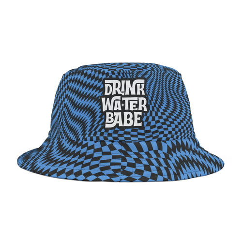 "Drink Water Babe" — Bucket Hat — Blue Optical Illusion Print