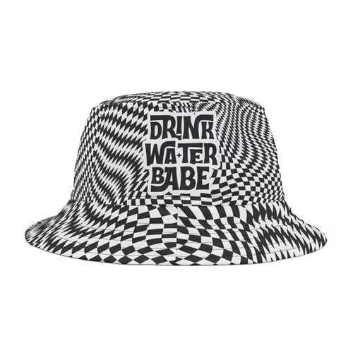 "Drink Water Babe" — Bucket Hat — Black & White Optical Trippy Pattern